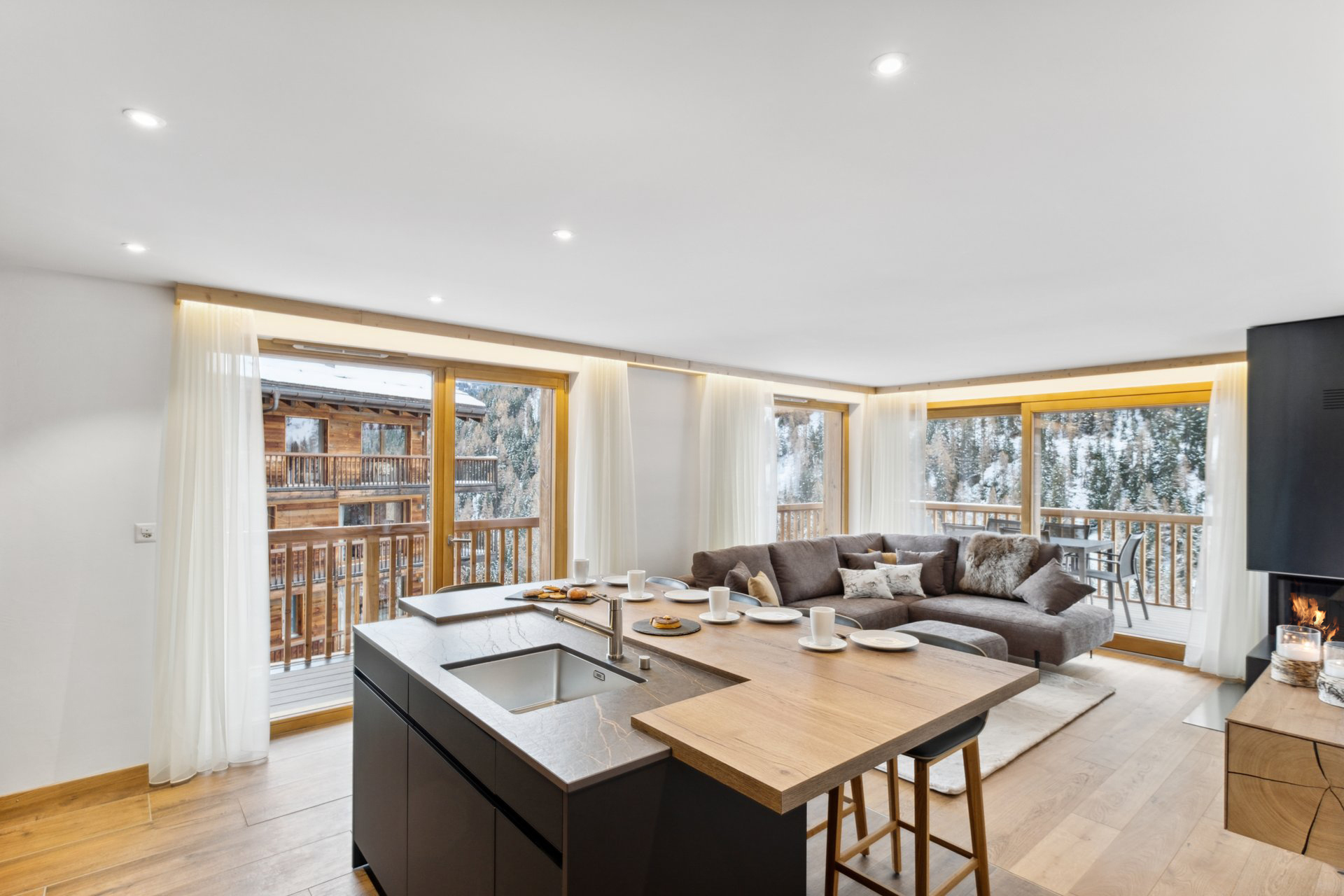 Sublime appartement Les Rahâs, situé au troisième étage, d'une surface de 92 m2 pour 2 chambres et 2 salles de bains pouvant accueillir jusqu'à 5 personnes. Il dispose également d'un balcon ensoleillé de 30m2 offrant un panorama époustouflant sur les montagnes.